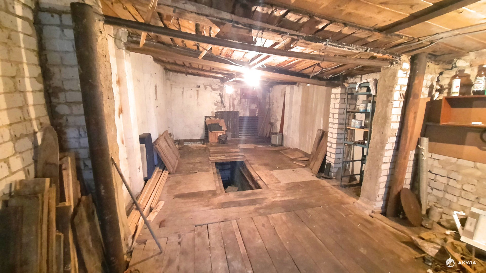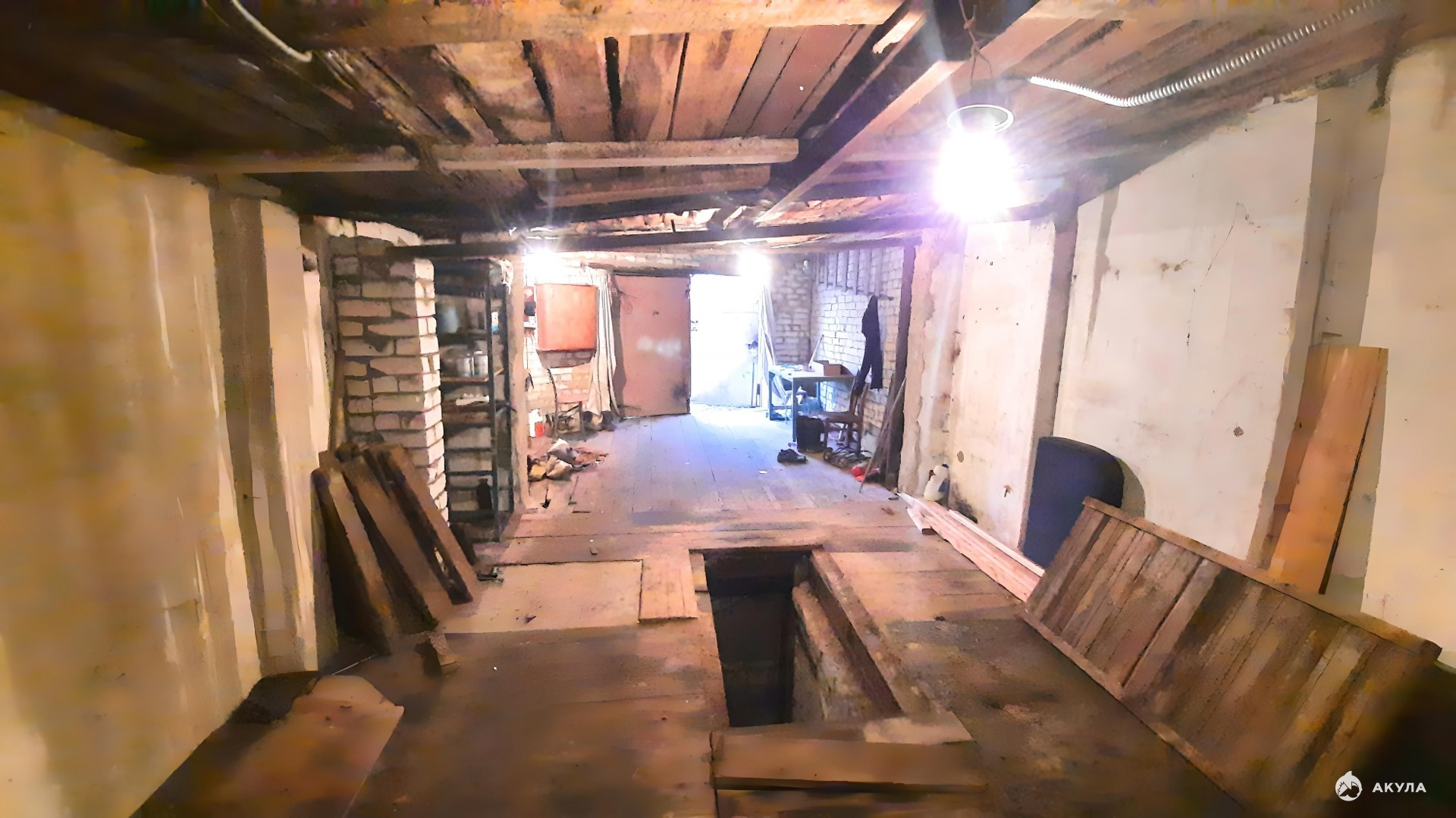 Гараж оснащен смотровой ямой и подвалом, что делает его максимально функциональным и удобным для хранения автомобиля и инструментов. Смотровая яма позволяет легко проводить техническое обслуживание и ремонт автомобиля, а подвал добавляет дополнительное пространство для хранения.
