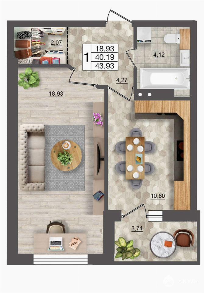 - 44 м²