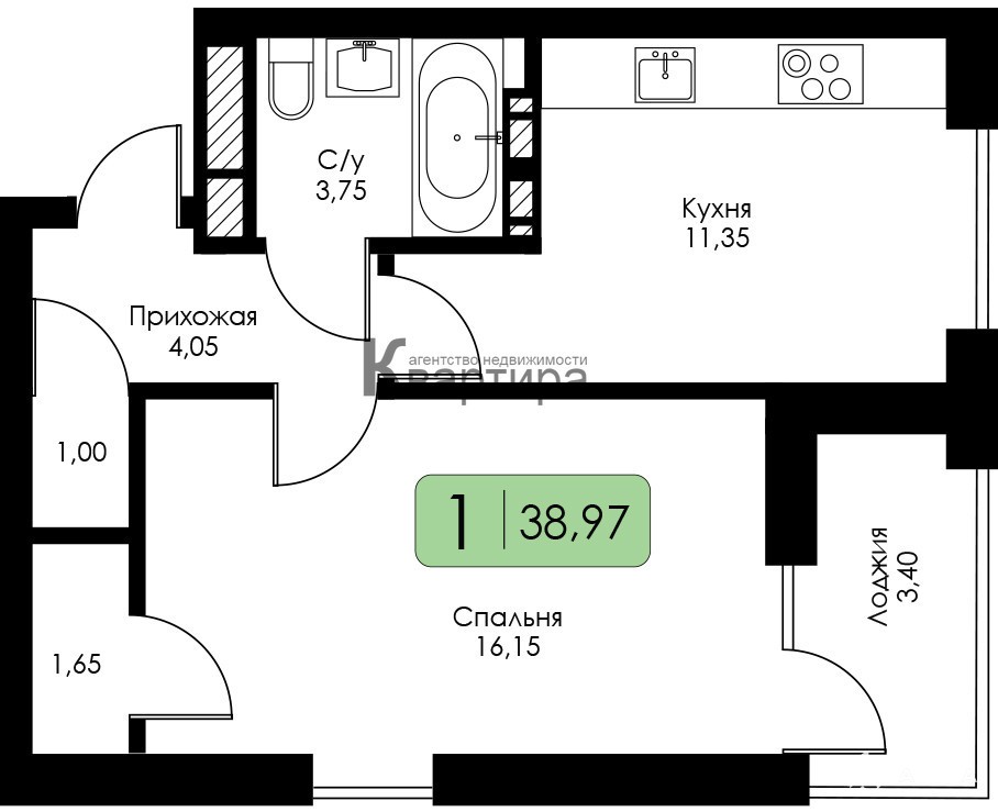 - 16.15 м²