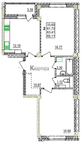 - 12.20 м²
