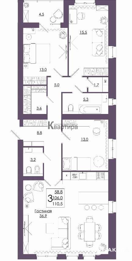 - 58.80 м²