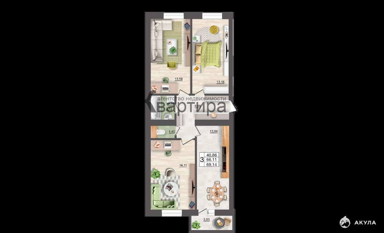 - 69 м²