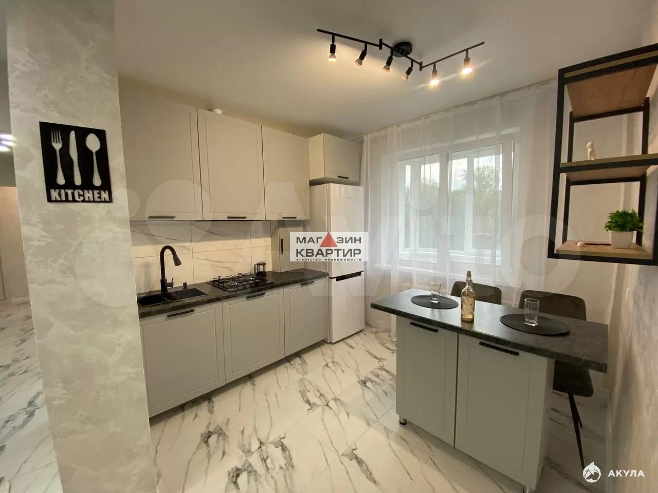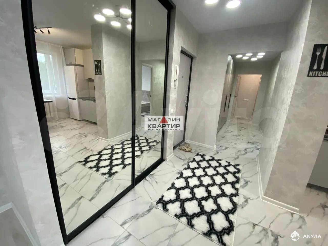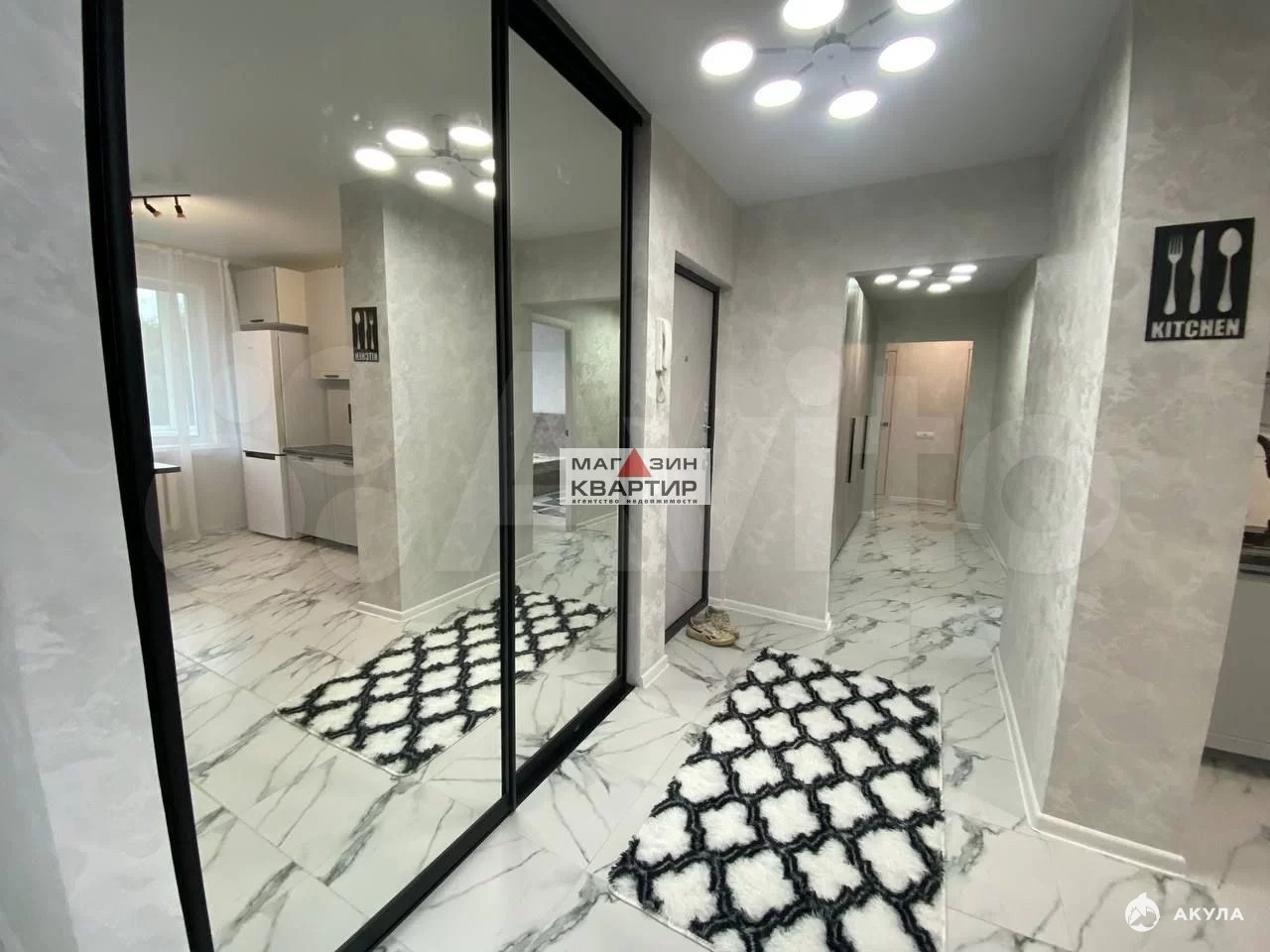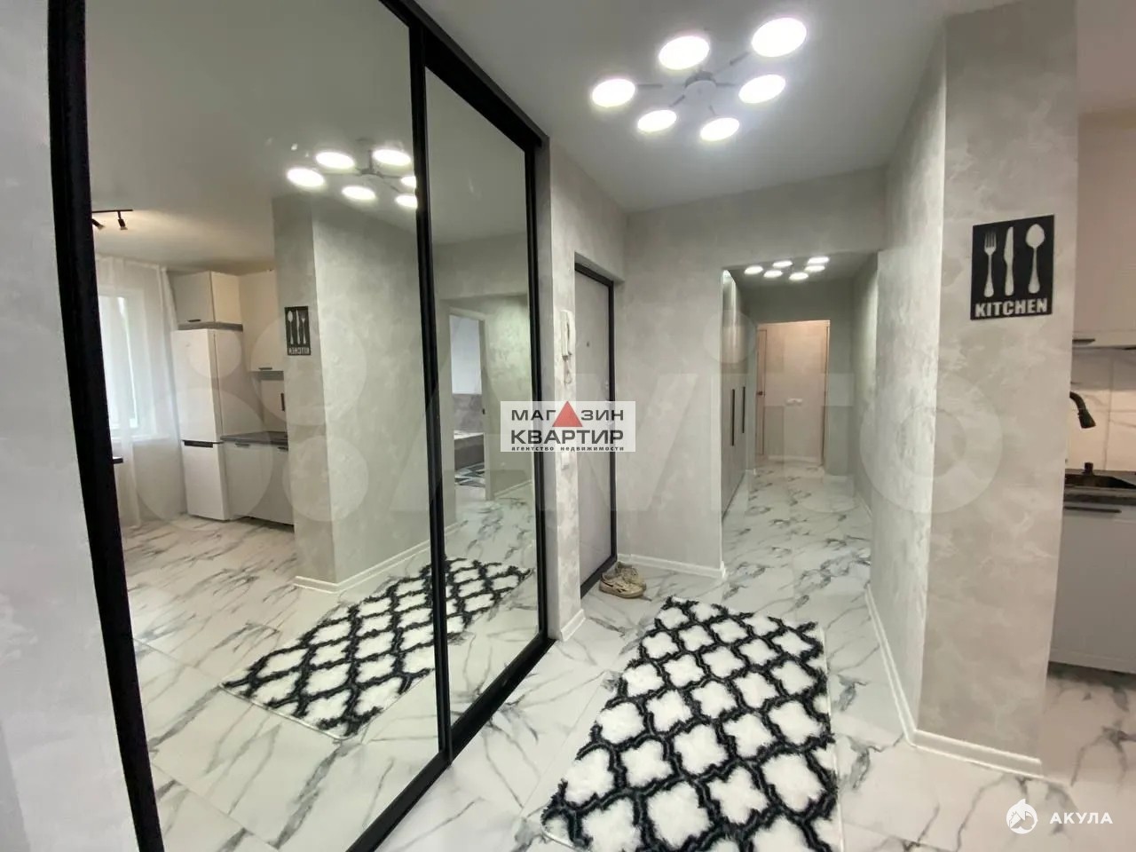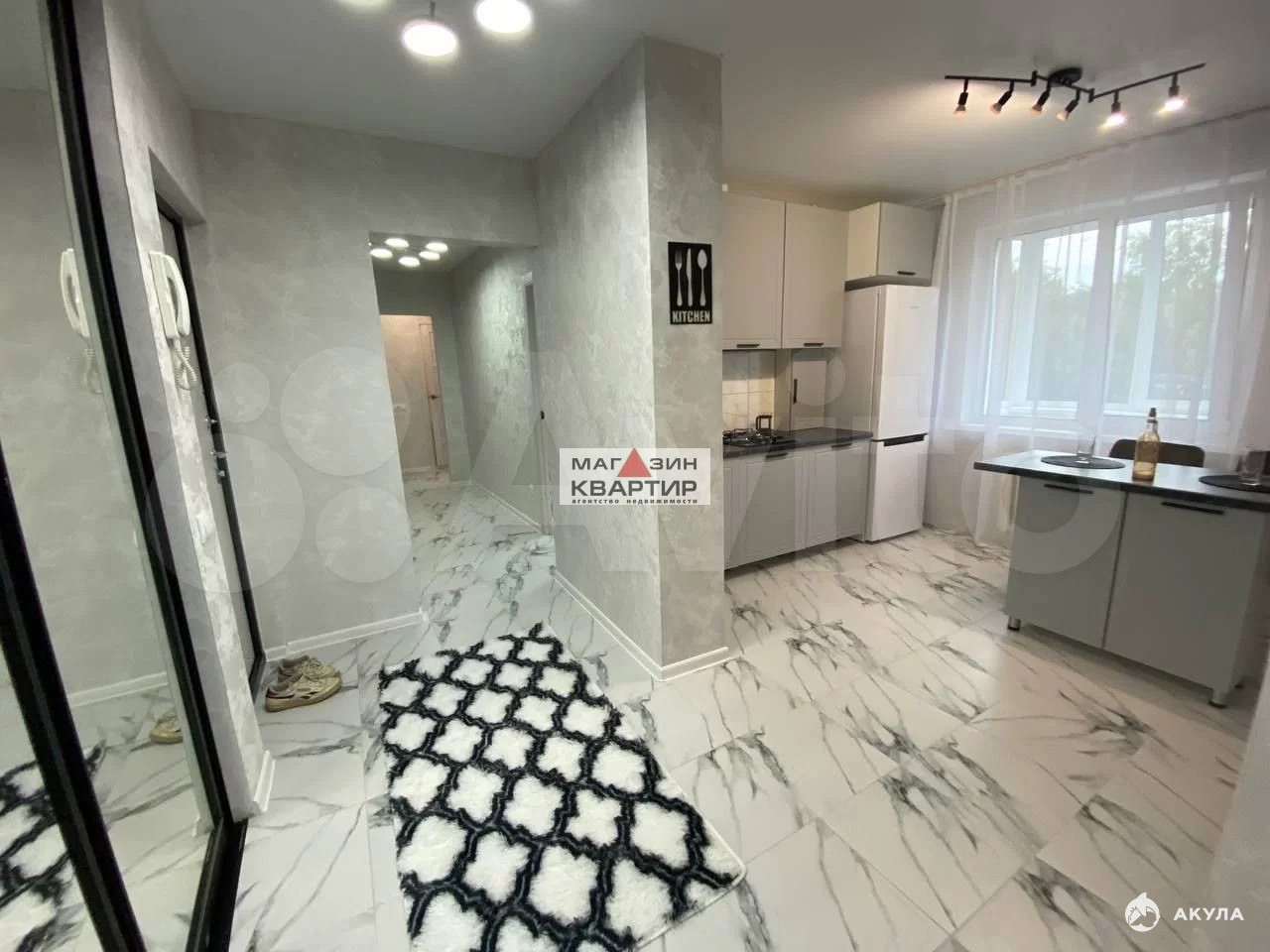 Кухня просторная и светлая, оснащена современной бытовой техникой, включая холодильник. В квартире установлены шкафы, которые добавляют функциональности пространству. Ванная комната выполнена в современном стиле с раздельным санузлом.