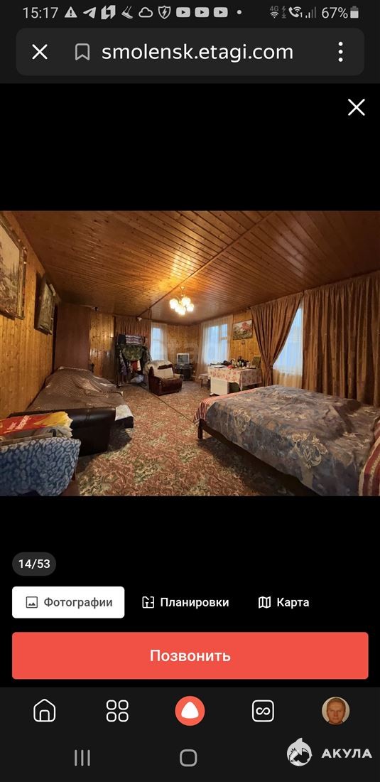ID в ИМЛС: 19935924 Продам 2-х этажный Дом площадью 75 м² ( Смоленская область, Руднянский район, деревня Заборье ул Дачная 6), участок 23 сот, в 20 м от озера Витрино, свой пирс. Проект дома - индивидуальный. Год постройки - 2000. Материал стен - сруб, обложен кирпичём. Кровля - шифер. Отопление - электрическое, батареи по всему первому этажу. Освещение - центральное. Туалет в доме, септик, Водоснабжение - скважина. На первом этаже: спальня - 25 кв.м, кухня-гостинная 25 кв.м. Газовая плита, газ балонный. Туалет и душ-ванная. Лестница на второй этаж. На втором этаже две спальни: 12 и 13 кв.м. с видом на озеро и въездные ворота. На участке: отдельный дом-баня, ещё отдельный дом-биллиардная, беседка 9 кв.м, сарай с большим запасом дров для бани, колодец. Оставляю всю мебель: 4 дивана, двуспальную кровать 160 на 200, три кресла, стулья, столы, большой холодильник, печь СВЧ, ковры и прочие. На участке растут яблони, груши, черешня, смородина, крыжовник, малина. В озере водится лещь, щука, линь, плотва, окунь, раки и т.д. Хорошая охота на уток, гусей, куропаток, вальдшнепа. Водится кабан, лось, косули, лиса. Есть грибные места. У местного населения можно купить молоко, сметану, мясо, сало, рыбу. 8 км до д. Стаи, где есть магазин. 20 км до г. Рудня, 80 км до Смоленска и Витебска (Белоруссия). Один соседний участок. До д. Стаи асфальт, от Стаи до д. Заборье хорошая грунтовая дорога, за которой следят. Заезжайте и живите.